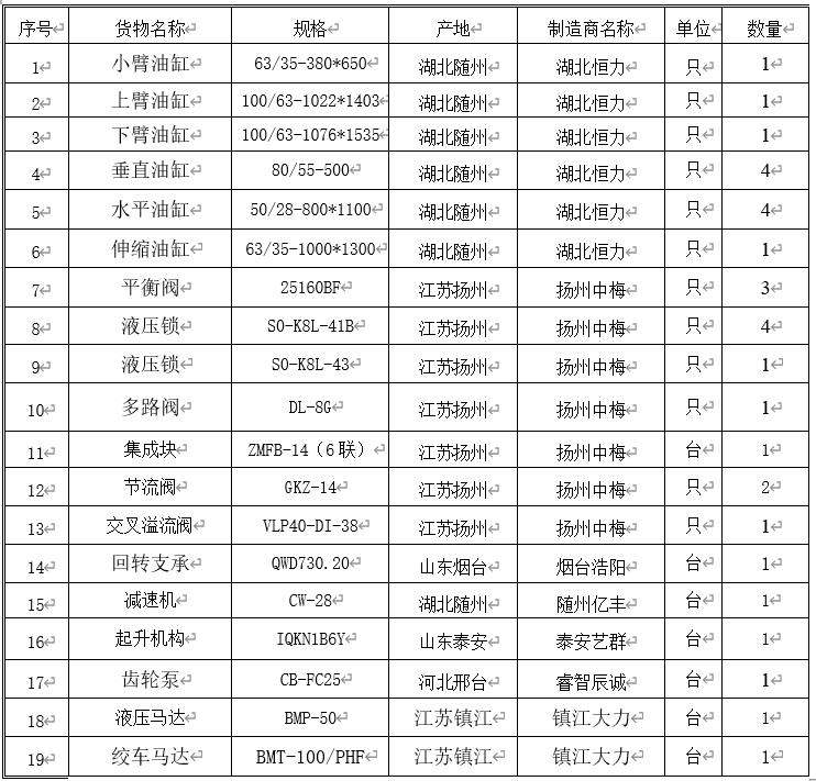 油缸 | 12只;帶雙向平衡閥或液壓鎖進行鎖止,保證安全 | |||||||