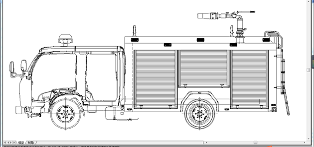 整車由消防員乘員室和車身兩大部分組成,車身布置采用內藏罐式結構,左右兩側為器材箱,中部為水罐,器材箱后部為泵房。