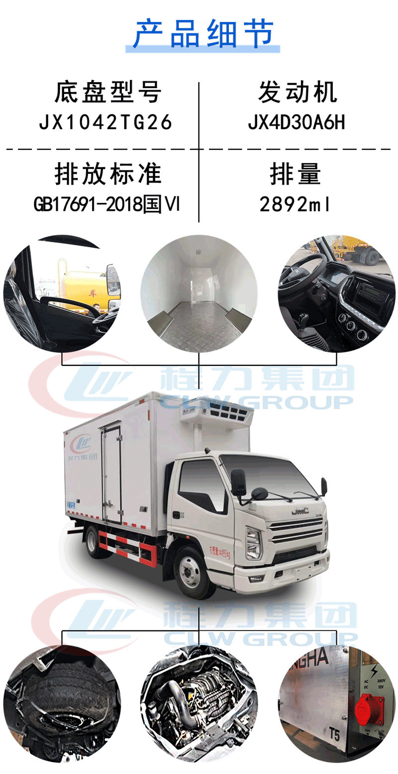 | 其他 | 車廂頂部封閉,不可開啟,導(dǎo)流罩為選裝件,選裝無側(cè)開門結(jié)構(gòu),選裝廂體側(cè)面開門樣式,選裝制冷量相同的制冷機(jī)組。ABS系統(tǒng)型號:APG3550500A,ABS系統(tǒng)生產(chǎn)廠家:浙江亞太機(jī)電股份有限公司;ABS系統(tǒng)型號: VIE ABS-II,ABS系統(tǒng)生產(chǎn)廠家: 浙江萬安科技股份有限公司。側(cè)防護(hù)采用冷彎型鋼/Q235-B,螺栓連接,后防護(hù)采用冷彎型鋼/Q235-B,焊接連接,后防護(hù)截面高度尺寸100mm,截面寬度尺寸50mm,下邊緣離地高度420mm。發(fā)動(dòng)機(jī)型號/油耗申報(bào)值對應(yīng)關(guān)系為:JX4D30A6H/11.4L/100km,JX4D30C6H/11.4L/100km,JX4D30B6H/11.4L/100km。 | ||