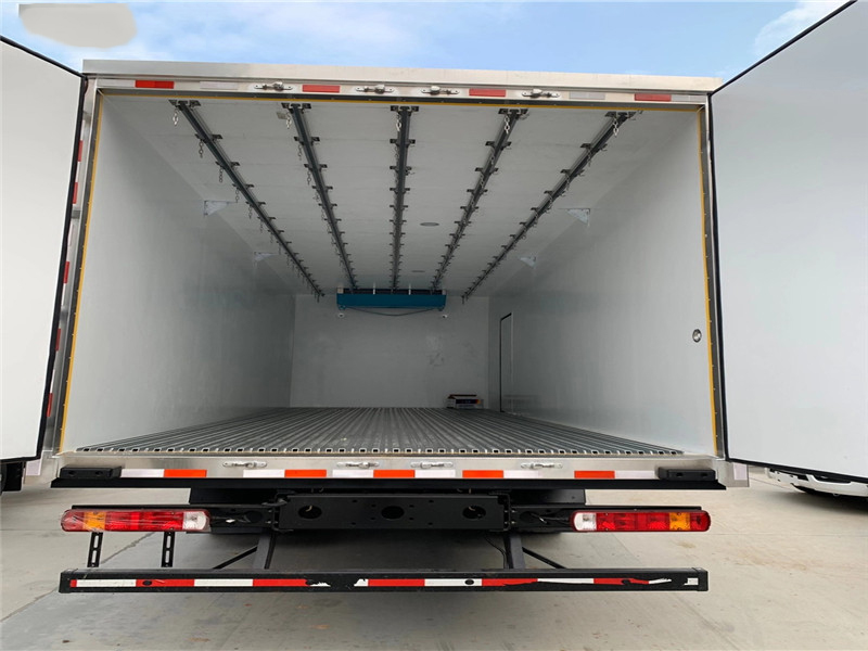 廂體配置:廂體板采用市面上最先進技術-負壓加熱抽真空技術,保溫性能達到國家A級標準廂體。內部尺寸為: 容積為 立方,廂體內外面料采用最新款納米玻璃鋼(不吸光、隔熱性好、硬度強、抗氧化)廂體厚度為8.5cm ,內襯骨架為防銹處理優質輕鋼型材鍍鋅管,保溫材料為無空隙填充聚氨酯發泡,廂體底部為鋁合金花紋板或選平面納米玻璃鋼,廂體采用鍍鋅不銹鋼包角,加厚型鋁合金包邊,后門框為不銹鋼,加厚型不銹鋼后門]合頁及鎖件,全車所有不銹鋼部位均使用食品級304不銹鋼制造,廂體內部采用ED照明燈及廂體示寬燈。