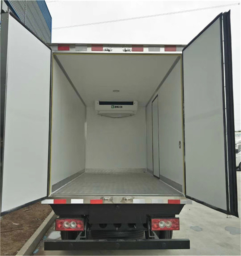 廂體工藝: 廂體材質(zhì)采用內(nèi)外玻璃鋼,中間8CM聚氨酯保溫板,后雙開(kāi)門(mén),廂體右側(cè)靠前選裝開(kāi)側(cè)門(mén),底部鋁花紋板,前部排水孔,門(mén)邊條采用迷宮式橡膠密封條,鋁合金型材包邊,不銹鋼包角,不銹鋼門(mén)鎖,不銹鋼門(mén)框及合頁(yè),廂體內(nèi)節(jié)能LED照明燈。