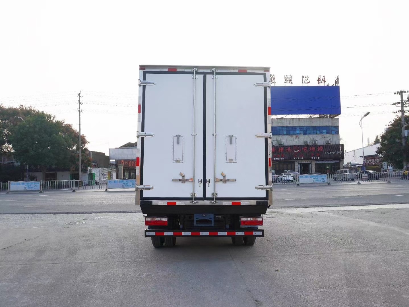 廂體工藝: 廂體材質采用內外玻璃鋼,中間8CM聚氨酯保溫板,后雙開門,廂體右側靠前選裝開側門,底部采用花紋防滑鋁板,前部排水孔,門邊條采用迷宮式橡膠密封條,鋁合金型材包邊,不銹鋼包角,不銹鋼門鎖,不銹鋼門框及合頁,廂體內節能LED照明燈。